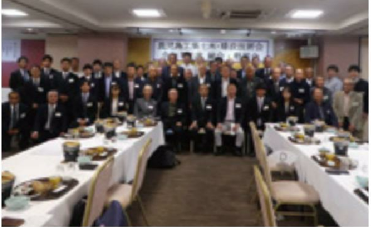 全国の同窓生の皆様に雪おかれましては、ご健勝のこととお喜び申し上げます。鹿児島工業土木・建設技術会は昭和60年5月に発足して以来、今年で41年目を迎えます。昨年度の総会・懇親会を11月2日鹿児島市内のホテルタイセイアネックスで計画したところ、鹿児島市内外から50名が参加し、盛会に開催出来ました。来賓は田中耕一郎校長、建設技術系の川野正弘先生と有川皓大先生、同窓会本部の永里和吉会長にご臨席いただきました。懇親会では会長が「40回目の節目に多くの会員が参加し、うれしく思います。十分にご歓談ください」と挨拶し、校長は「学校への支援に感謝します」、同窓会会長は「同窓会活動にご協力ありがとうございます」と述べました。乾杯では金里勝さん(S35卒)が「生きておれたから出会しました。皆さんに会えてうれしい」と一兀気に音頭を取り、宴会は会話と飲食で盛り上がりました。閉会の時刻になり、全員で校歌斉唱してから、山崎洋副会長(S45卒)が一本締めを行いました。