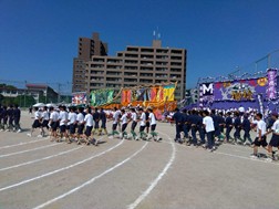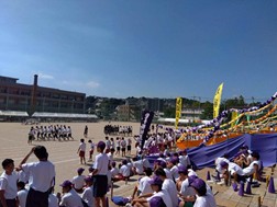 令和7年10月11日,伝統の大運動会が行われました。校舎改築,グラウンドの改修を終え,60年ぶりに校内で大運動会が開催されました。