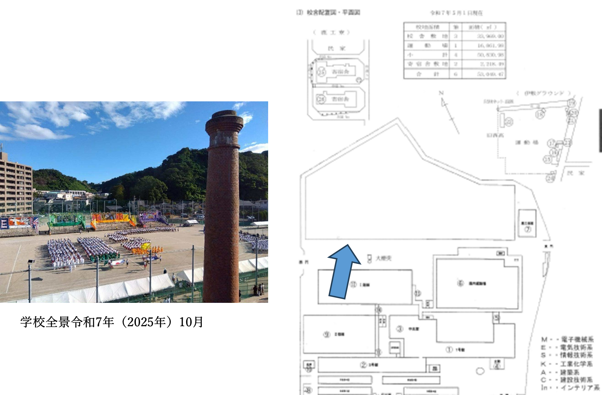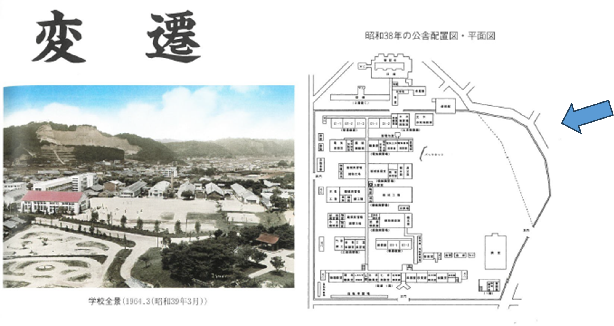 当時は伊敷中学校側に実習棟があり護国神社側で行われていたようです。今回は全く逆です。当時の校内の配置図と現在のものを比べてみて下さい。