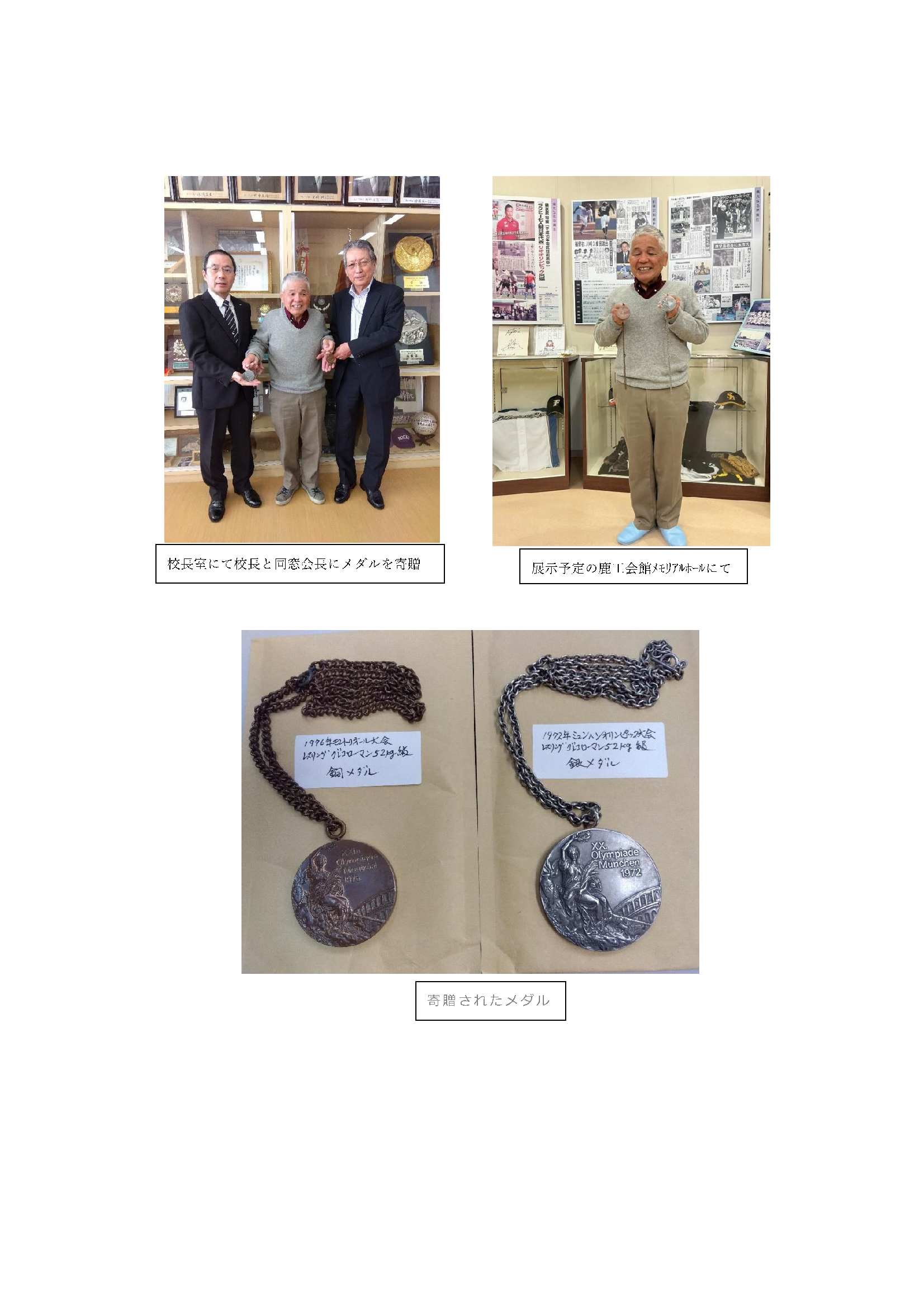 平山紘一郎氏(昭和40年機械科卒)よりメダルの寄贈がありました