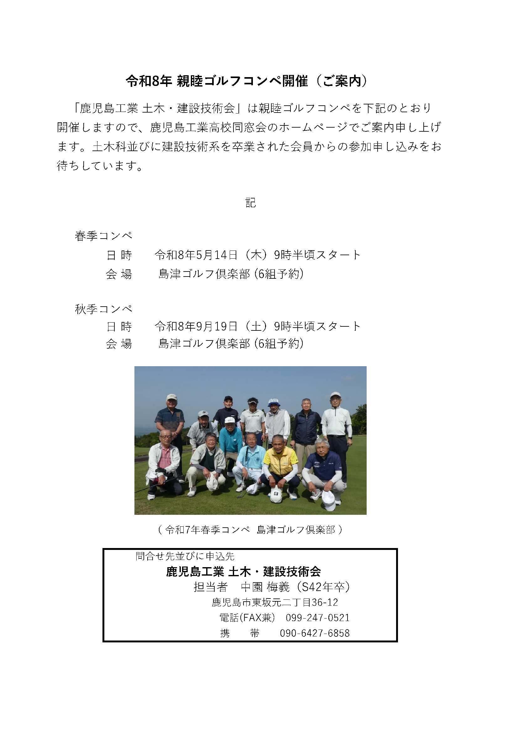 令和8年 親睦ゴルフコンペ開催のご案内